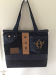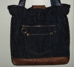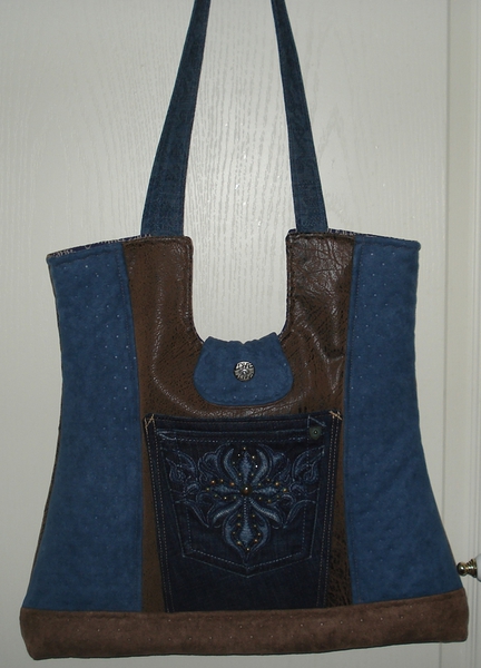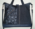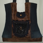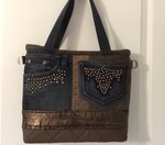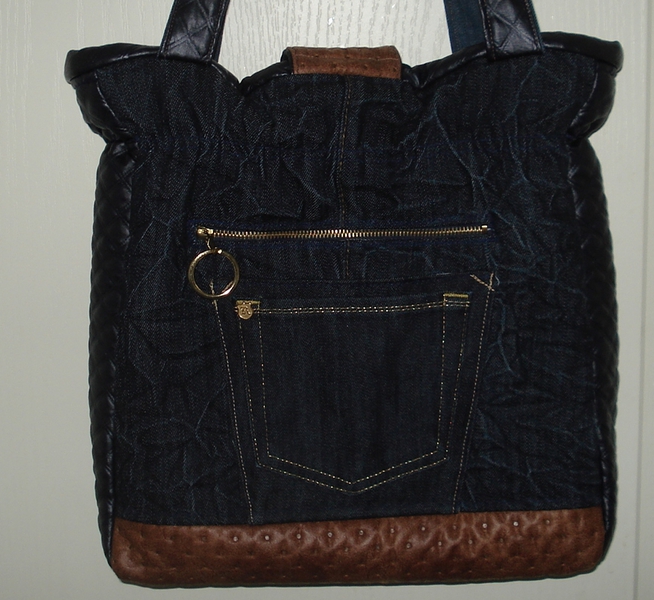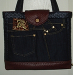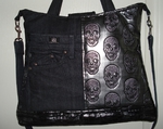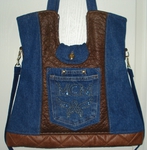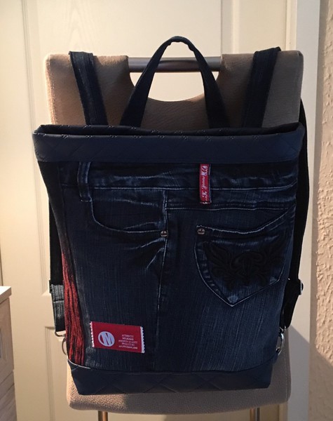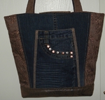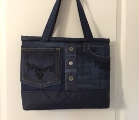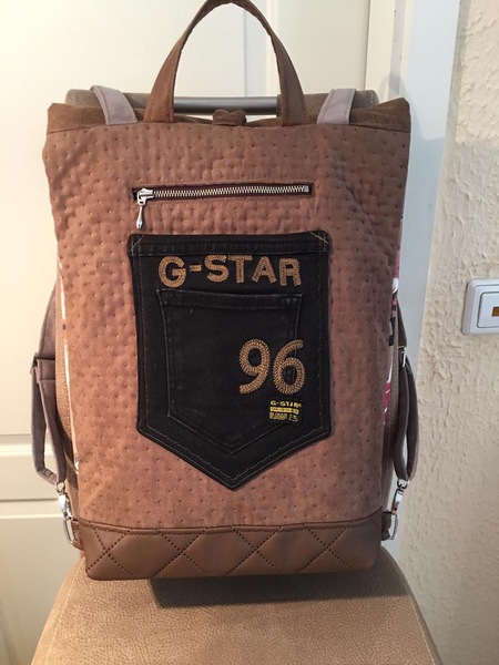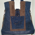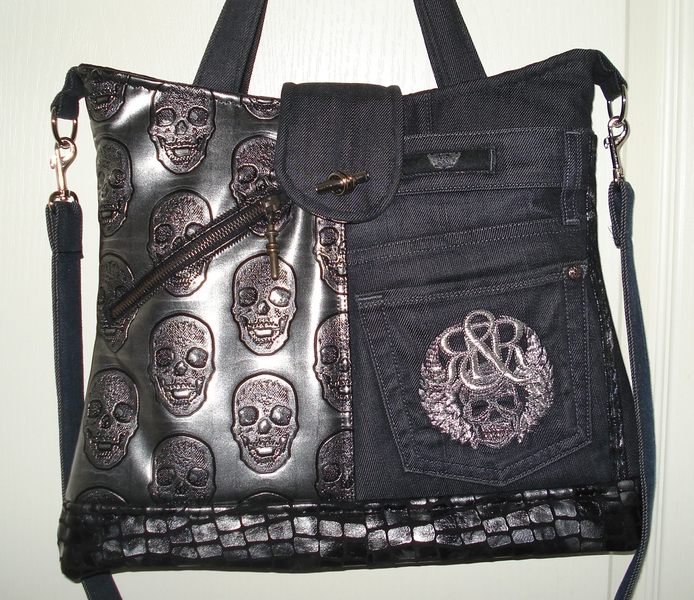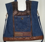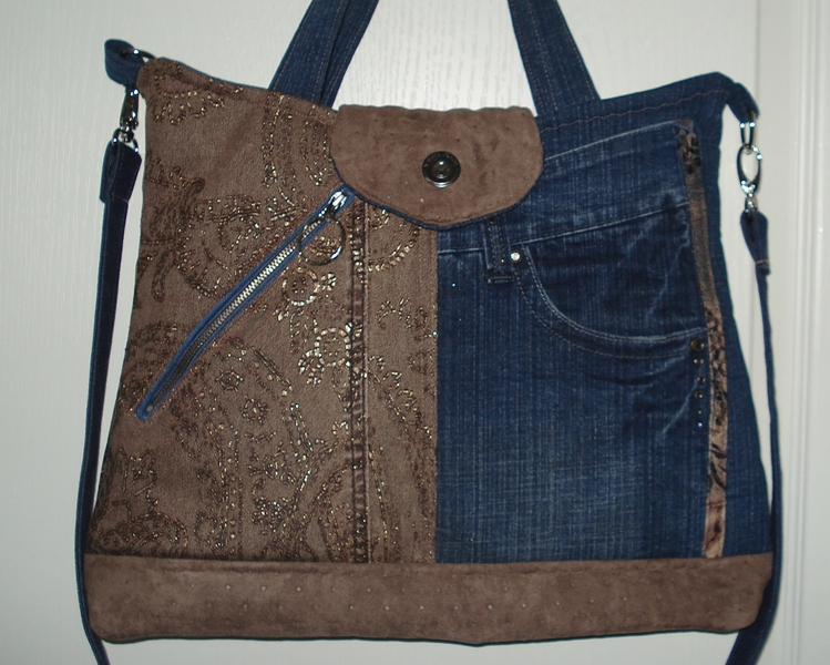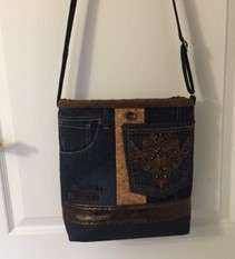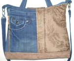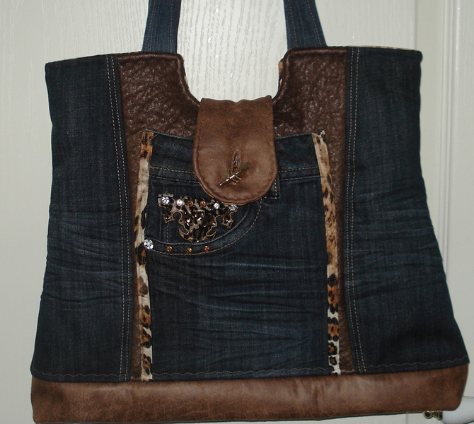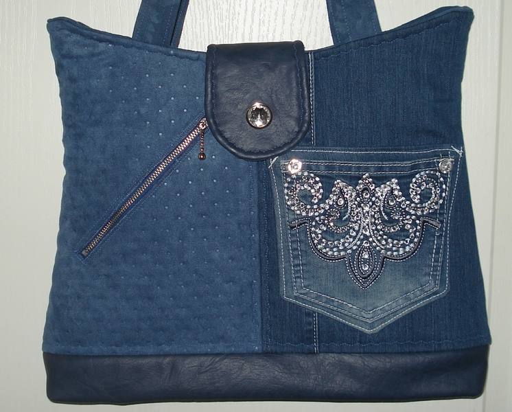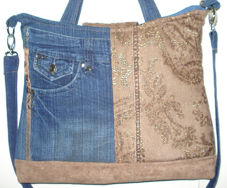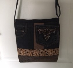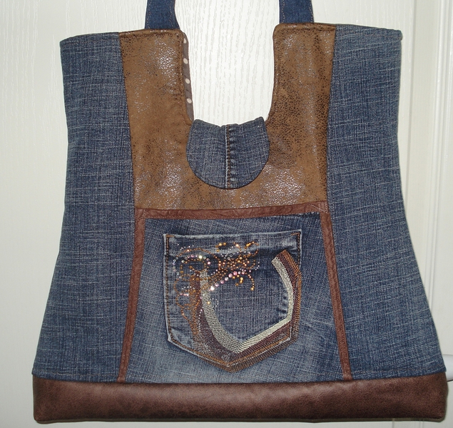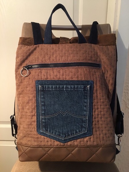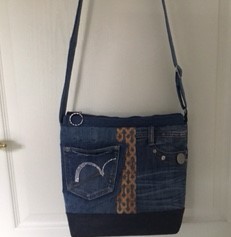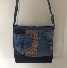 Auch bei uns spielt Denim in diesem Jahr eine große Rolle. Für alle Unikate liefern neue Markenjeans das Hauptmaterial. Taschen dieser Jeans, oft auch die Originalknöpfe, ergeben mit passenden Ergänzungsstoffen einen interessanten Materialmix. Hochwertige Lederimitate, oft in Kontrastfarben, ziehen das Augenmerk des Betrachters auf sich. Wie Sie sehen können, lohnt sich der Aufwand.